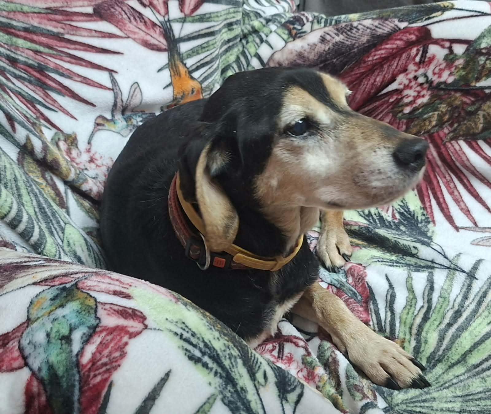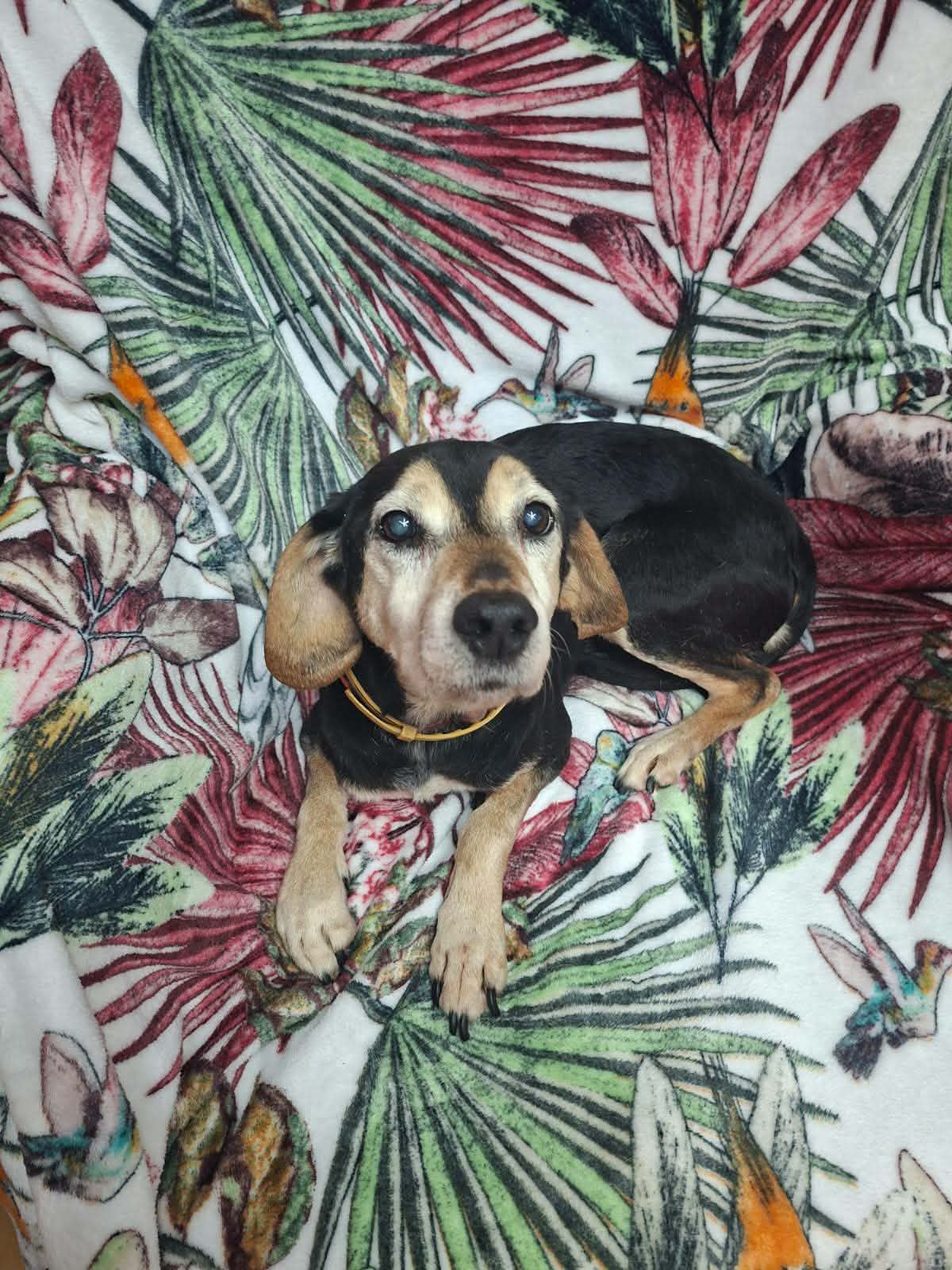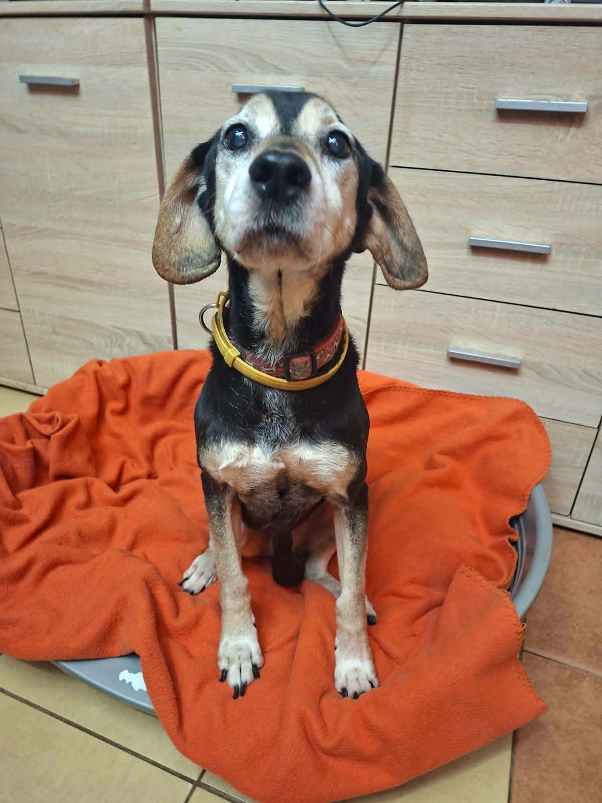 Uszatek to psi senior, który od 7 lat jest psem bezdomnym i mieszka w hotelu dla zwierząt. Został znaleziony na ulicy, gdy błąkał się bez celu. Miał na sobie obrożę, więc na pewno miał jakiegoś właściciela. Niestety pomimo ogłoszeń nikt się po niego nie zgłosił i nie szukał Uszatka. Miał jechać do schroniska, ale na szczęście udało się tego uniknąć.